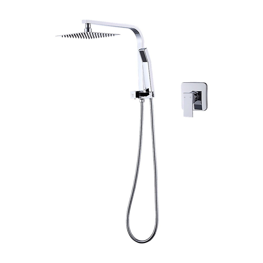 WELS 8″ Rain Shower Head Set Square Dual Heads Faucet High Pressure Hand Held