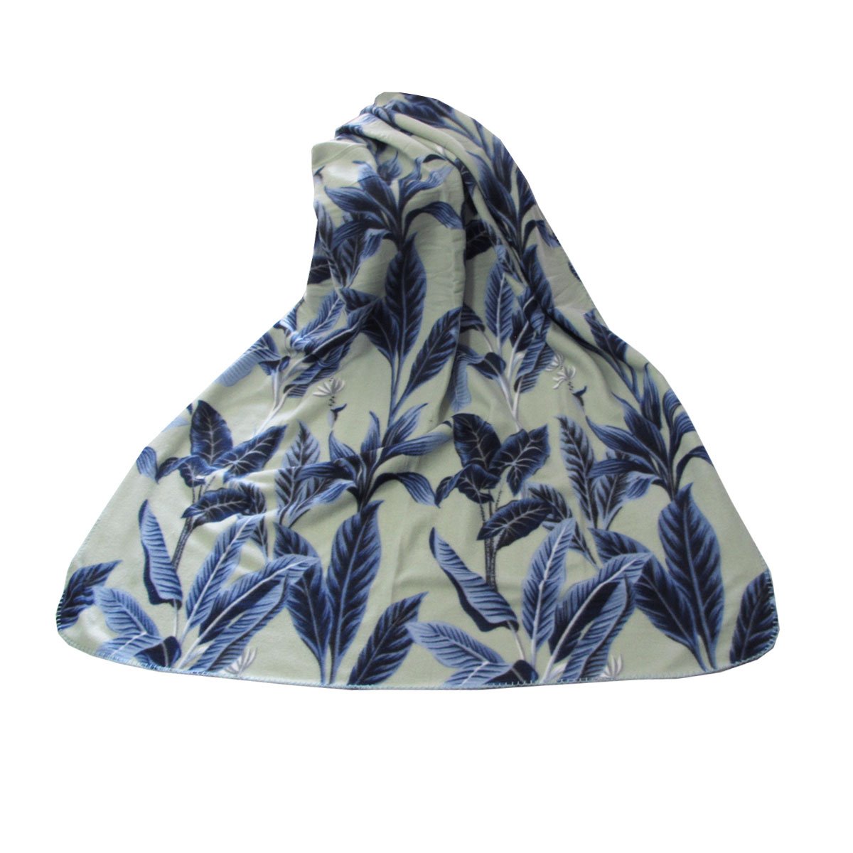 175GSM Banana Tree Leaves Printed Polar Fleece Throw Rug 120 x 150cm Blue