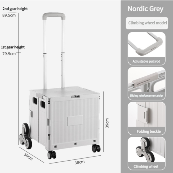 Nordic Grey Climbing Wheel Folding Cart – Compact and Durable for Outdoor Camping and Picnics